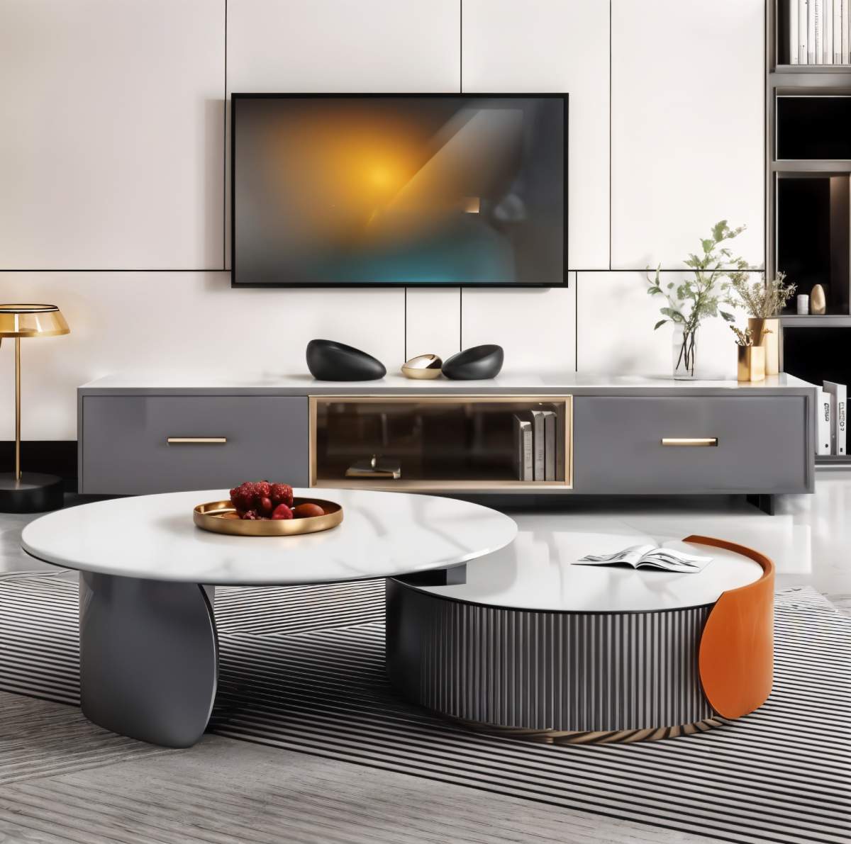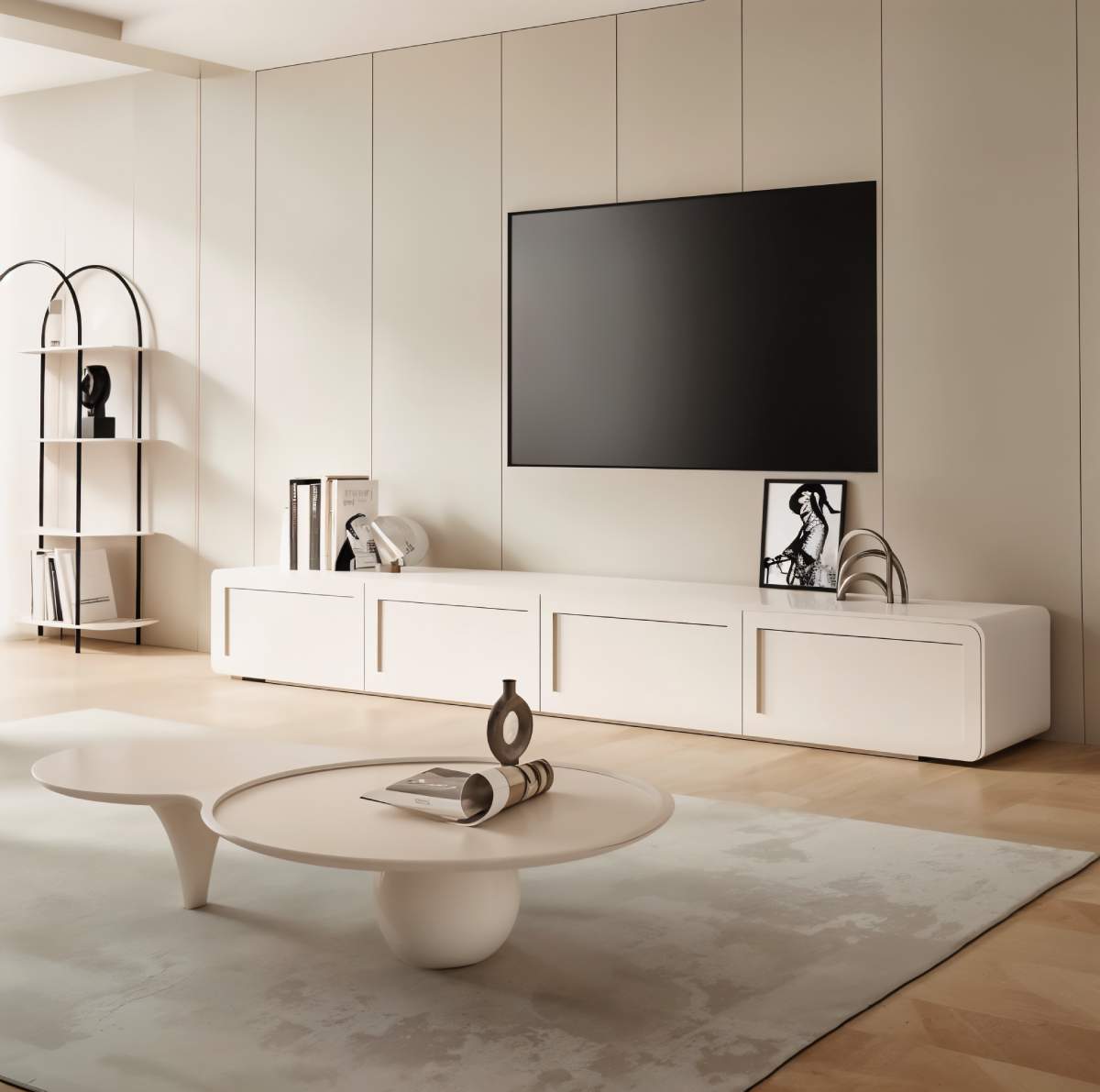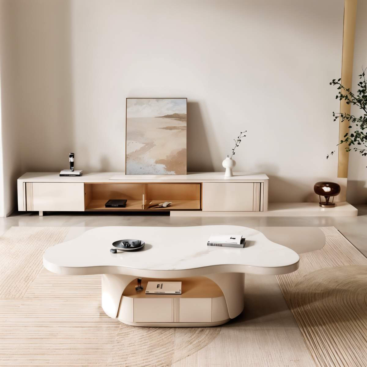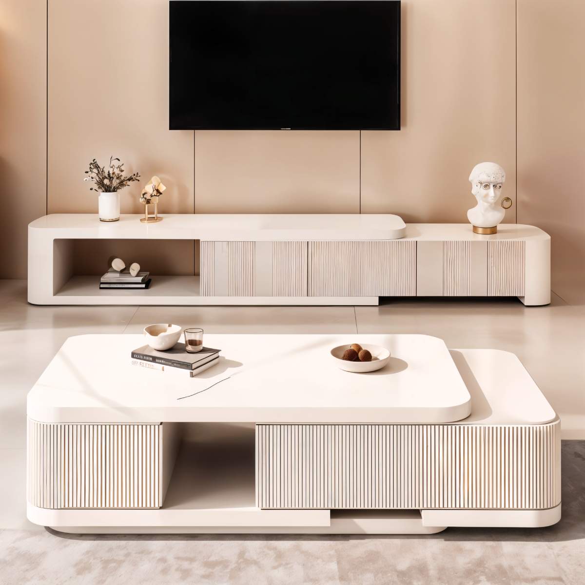 The Clara Coffee Table and TV Cabinet Set displays simple luxury